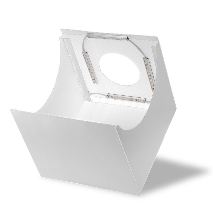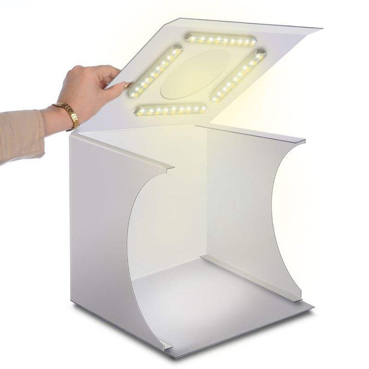 یکی از مهم ترین نکات برای داشتن یک عکس عالی از محصول، نور پردازی آن است که فراهم کردن شرایط نور مناسب مشکل می باشد. چادر عکاسی پیشگام، از جنس پلاستیک «کارتن پلاست» درجه یک تولید شده است و کاملا محکم طراحی شده به صورتی که در زمان استفاده مانند دیگر محصولات مشابه کج نمی ایستد. مهم ترین خصوصیت لایت باکس پیشگام که آن را از نمونه های خارجی و داخلی متمایز می سازد؛ نور بسیار قوی و خوبی است که از ترکیب دو نور ال ای دی سفید و زرد به وجود آمده و روشنایی بی نظیری را در داخل باکس ایجاد می نماید. چراغ های ال ای دی به صورت شاخه ای در چهار طرف بالای باکس قرار گرفته و از طریق یک آداپتور به برق انرژی آن ها تامین می شود. در قسمت بالایی سافت باکس نیز محفظه ای تعبیه شده است تا بتوانید از بالا نیز عکاسی نمایید. به همراه محصول سه قطعه مقوا در رنگ های مشکی، سفید و آبی عرضه می گردند تا امکان عکاسی با پس زمینه رنگی را نیز داشته باشید وهمچنین می توانید از مقواهای رنگ های دیگر نیز خودتان استفاده کنید. دارا بودن آداپتور برق که قدرت نوردهی محصول را چندین برابر می نماید، دارا بودن 72 ال ای دی مهتابی و آفتابی در چهار طرف سقف سافت باکس با قدرت نور بالا و وزن سبک از ویژگی های برجسته این محصول نسبت به نمونه های مشابه می باشد. یکی دیگر از ویژگی های برجسته این محصول نسبت به نمونه های مشابه دارا بودن قدرت نوردهی بسیار بالاتر می باشد که امکان عکاسی با سرعت بالاتر برای دوربین و تلفن همراه را فراهم می کند و به تبع آن باعث جلوگیری از تاری و همچنین حذف اثر لرزش دست در تصاویر و در نتیجه وضوح بالایی می شود.