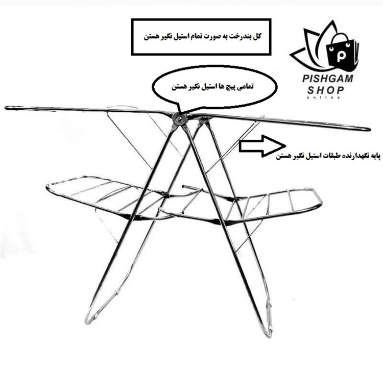 بند رخت پیشگام مدل آپارتمانی تمام استیل(بشرط آهن ربا نگیر) 4 بال کد HN2FX-4B - استیل