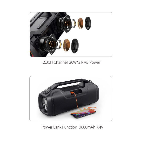 قابلیت شارژ گوشی با خروجی 7.4 ولت / مقاوم در برابر قطرات آب (ipx5)
