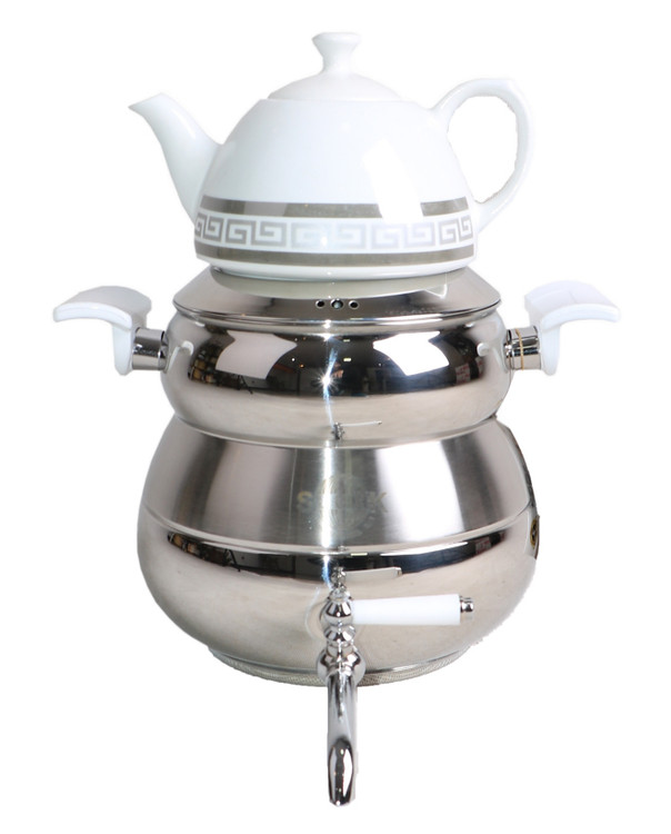 طول شیر: ۱۲ سانتیمتر - فاصله بین دستهها: ۲۲ سانتیمتر - دارای صفحه برای قرار دادن کتری - دارای خروجی بخار آب جنس بدنه استیل ضخیم ۱۸/۱۰ آهنربا نگیر براق ضد زنگ