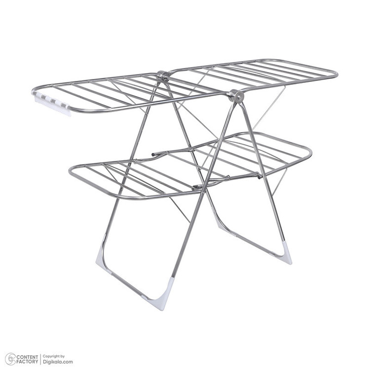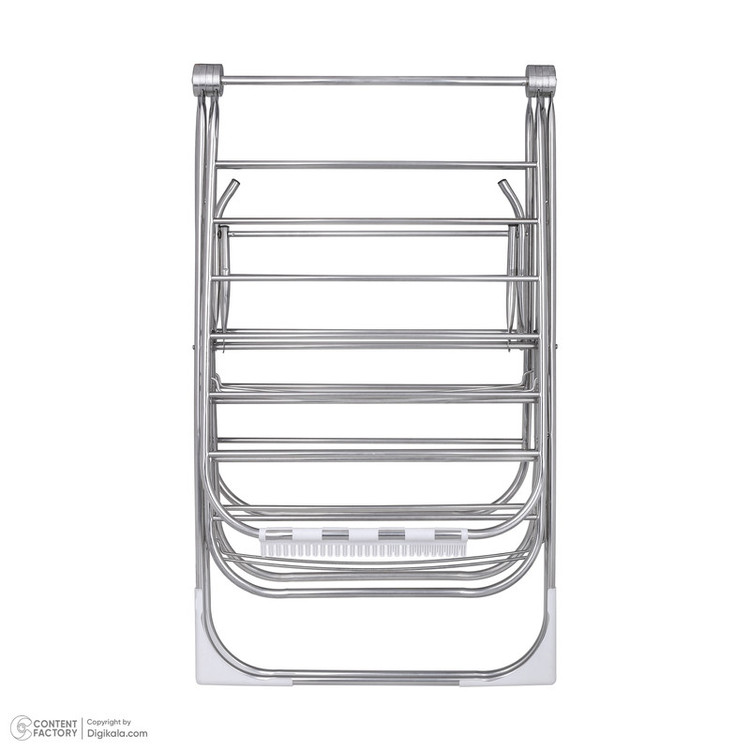 - دو طبقه - دارای 26 ردیف جهت آویزان کردن لباس - استیل که خاصیت جذب آهنربا را ندارد - میله های نگهدارنده طبقاتشم استیل