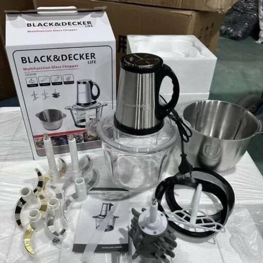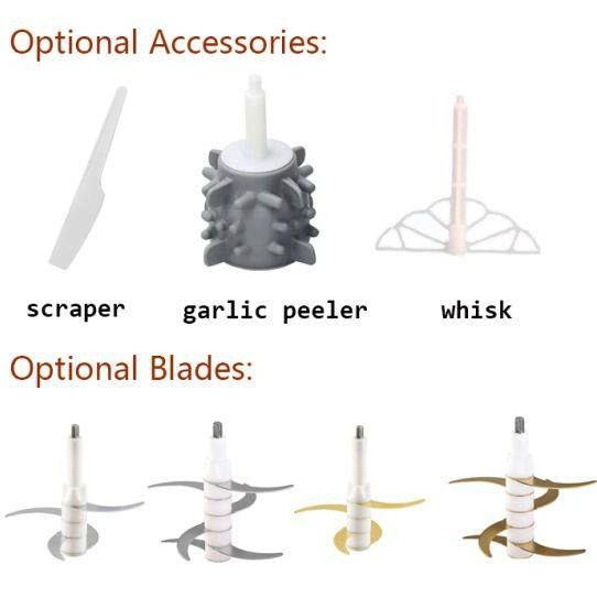 یک کاسه استیل + یک کاسه پیرکس یک شش تیغ طلایی + یک شش تیغ استیل سیر پاک کن + همزن
