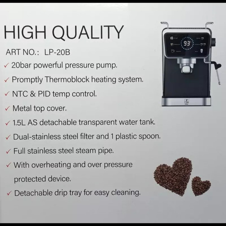 دیدن محصولات مرتبطاین محصول جزو جدیدترین محصولات برند معتبر زیگما می باشد ،اسپرسوساز 5 کاره زیگما مدل LP-20B تجربهای حرفهای برای عاشقان قهوه است. اگر به دنبال دستگاهی حرفهای، چندکاره و باکیفیت هستید که شما را از مراجعه به کافیشاپ بینیاز کند، اسپرسوساز 5 کاره زیگما مدل LP-20B انتخابی بینظیر است. این دستگاه با طراحی مدرن و کارایی بالا، تمام نیازهای شما برای تهیه انواع نوشیدنیهای گرم را برطرف میکند. پشتیبانی از 5 عملکرد متنوع تهیه اسپرسو با کرمای غلیظ،کاپوچینوی خامهای ،لاته حرفهای، آب گرم برای دمنوشها به همراه فشار بخار بالا از ویژگی های این محصول است. طراحی شیک و مدرن ونمایشگر تمام دیجیتال و همچنین استفاده آسان این اسپرسوساز، تجربهای راحت و لذتبخش برای تهیه قهوه فراهم میکند.